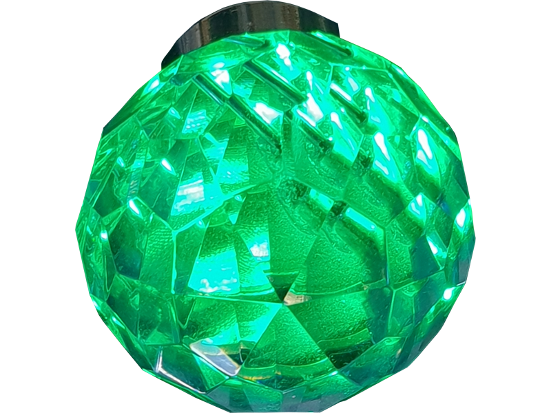 Chandelier Fiber Optic Crystal Ball Fitting with a 42mm crystal height for decorative applications. These fittings can be used with end-emitting or side-emitting fiber cables suspended individually or in clusters making chandeliers.