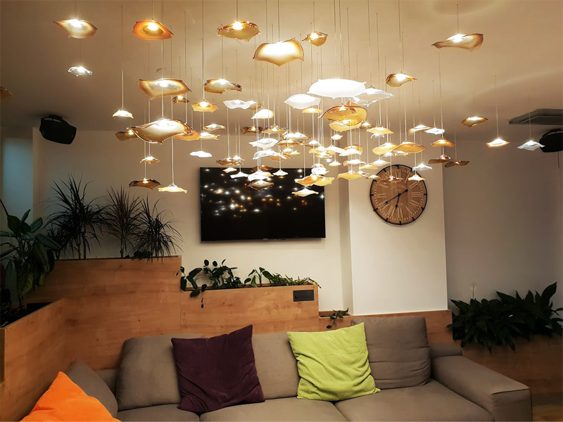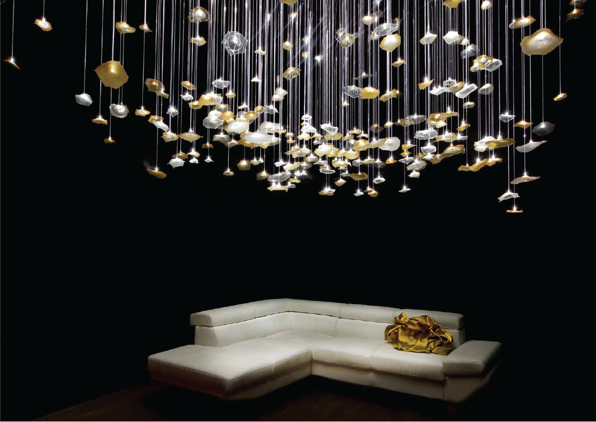 Our Fiber optic pendant – Infinito, is a seemingly floating and infinite-looking light fixture with beautifully hand-crafted glass end fittings. Use it as a single hanging piece or as part of a modular setup that can be shaped in almost any size or pattern. Mastered are the end floating glass fittings that hang on the single optic fibers powered by LED technology.
