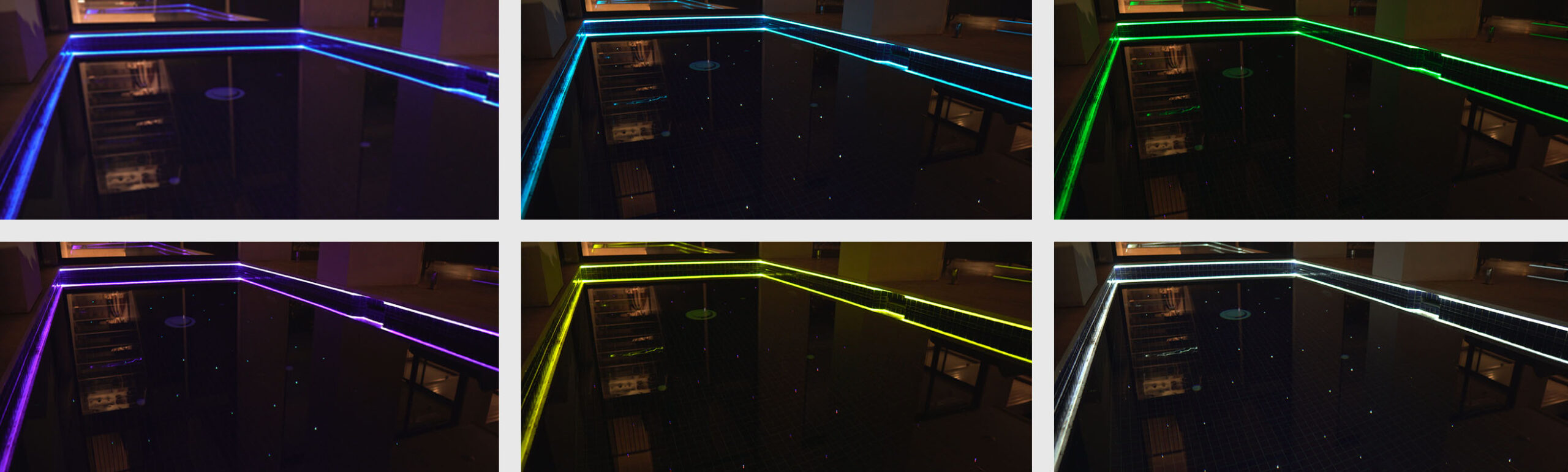 LightEFX's perimeter pool lighting system utilizes fiber optic technology to illuminate the pool's edges with a halo effect using color-changing fiber optic cables that have a 360° neon-like glow. As the fiber cables do not conduct electricity or heat, LightEFX's perimeter pool strip lights are easy and safe to install.